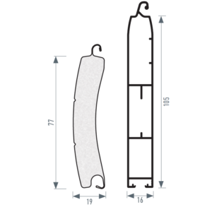 Lama de alumiminio perfilado rellena de espuma de poliuretano rígido con varias densidades.