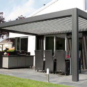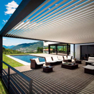Pecrisur Pérgolas es un sistema de sombreado hermético con celosías giratorias. Esta fabricado completamente de aluminio y ofrece protección contra la luz solar durante los días soleados, así como del agua de lluvia o la nieve con su sistema especial de drenaje.
